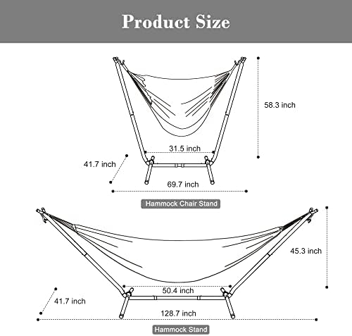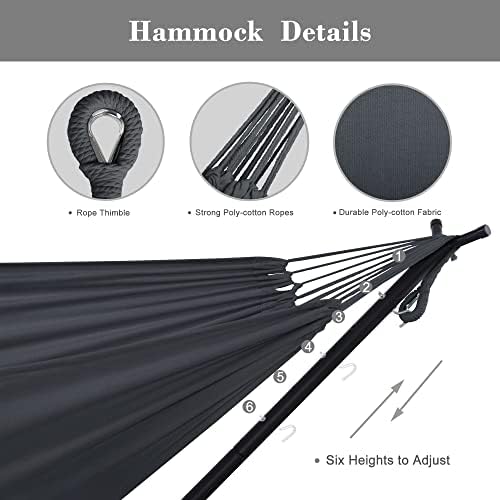 Forget about complicated setups or finding the perfect trees for suspension. With the included sturdy stand, setting up your hammock has never been easier. The stand is designed with high-quality steel and a powder-coated finish, giving it the strength and durability to support up to two people effortlessly. You can now enjoy your hammock anywhere, anytime, without the hassle of finding the ideal hanging spots.