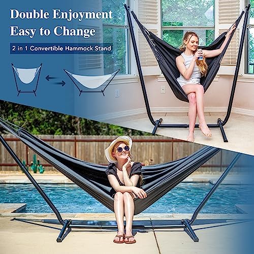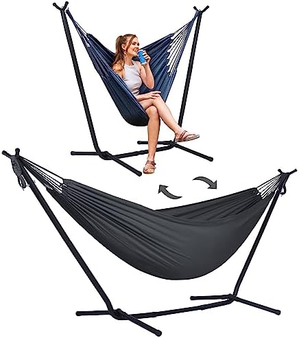 SUNCREAT 2-in-1 Hammocks Convertible Portable Double Hammock with Stand Included, Outdoor Hammock